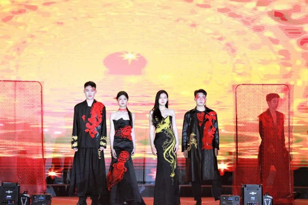 展示过程中,身着红色剪纸服饰的学子们踏着悠扬的乐曲款款走来👩🏻🍳,仿佛国家级非物质文化遗产——中国剪纸在舞台上流动起来👰🏽♀️。这些剪纸图案不仅点缀在衣角、领口,还巧妙地融入到整体设计中🔩,使服装在视觉上呈现出独特的艺术效果🧖。现场观众被这些精美的剪纸服饰深深吸引,喝彩声、掌声此起彼伏🧛🏻♀️,不绝于耳。
