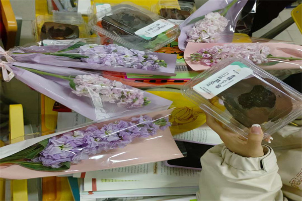 鲜花配贺卡。“对面的女孩看过来📭👐,看过来,看过来,这里表演的很精彩……”23级空乘5班教室里响起了歌声。班长、寝室长齐上阵为班级女生过节增添欢乐氛围🛠,送上鲜花👵,在卡片上写下祝福的话,让女生们有惊喜,有幸福🤦🏼♀️。
