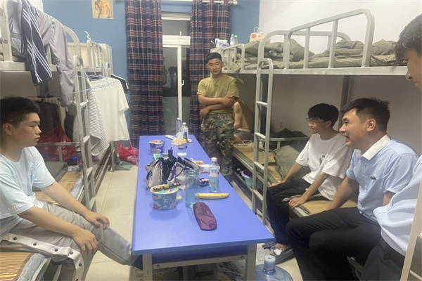 高维岩在“一站式”学生社区座谈区、宿舍内和学生谈心交流,了解新生住宿和生活情况🦋,从“住宿环境是否习惯”到是否存在“生活上的难题”🙆♀️。从“衣服晾晒是否方便”到“生活用品是否有短缺”等情况,围绕新生“衣食住行”进行细致耐心地沟通🥝,倾听学生的进校感受🍧,生活需求🥫。