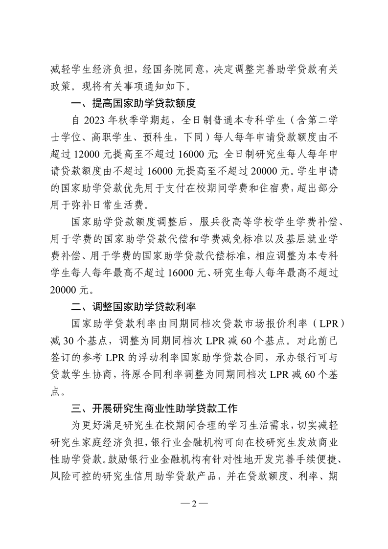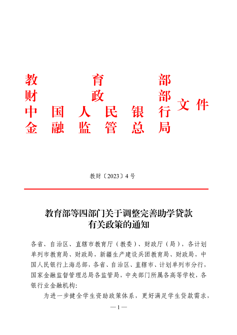 教育部等四部门关于调整完善助学贷款有关政策的通知(教财〔2023〕4号)