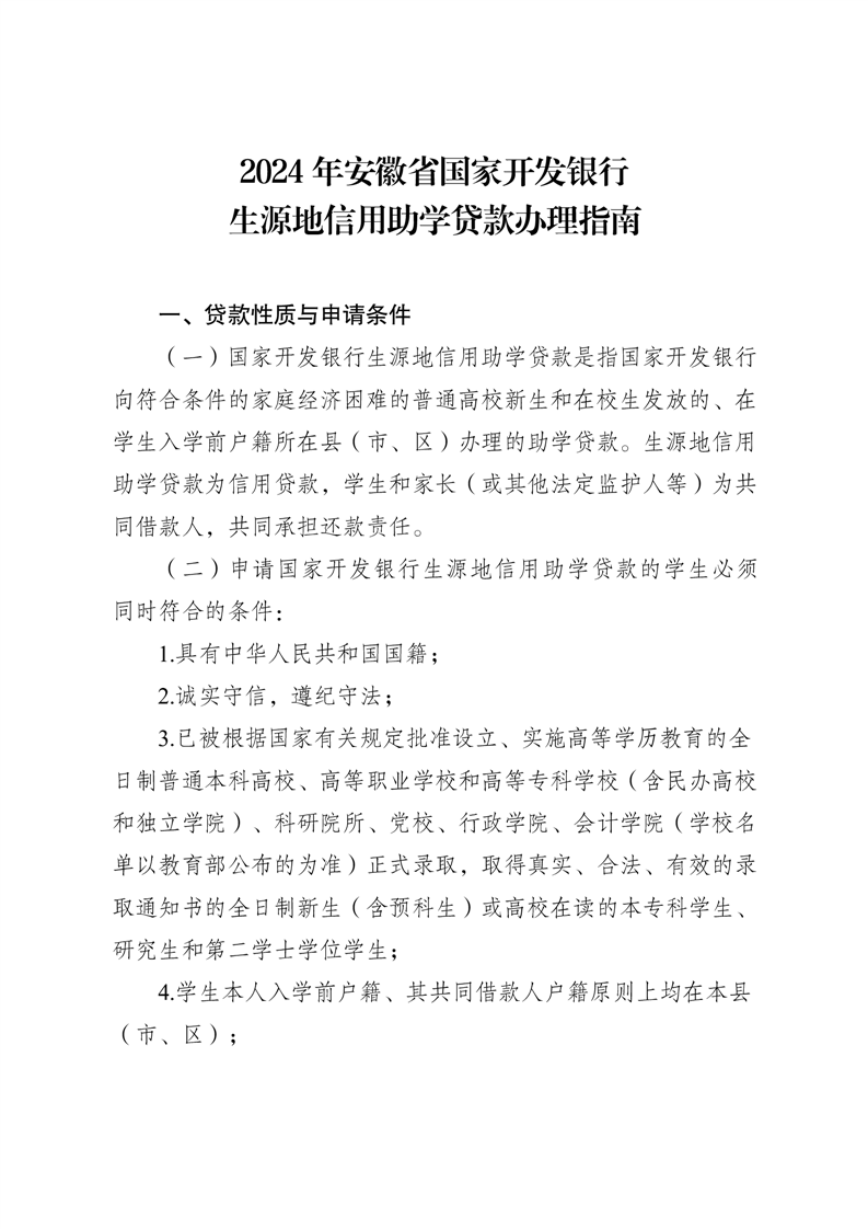 2024 年安徽省国家开发银行生源地信用助学贷款办理指南
