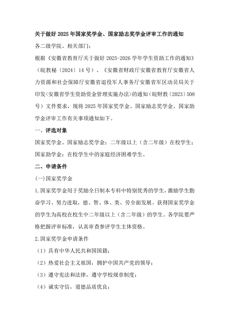 关于做好2025年国家奖学金💂🏼♀️、国家励志奖学金评审工作的通知