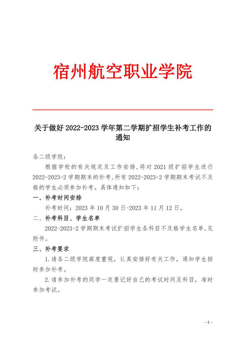 关于做好2022-2023学年第二学期扩招学生补考工作的通知