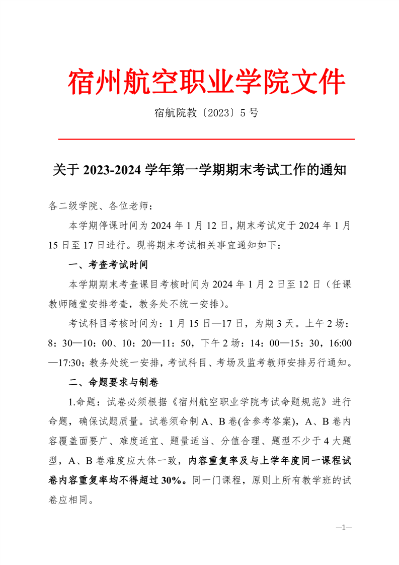 关于做好2023-2024学年第一学期期末考试工作的通知