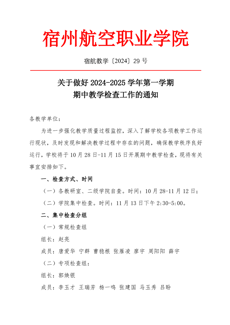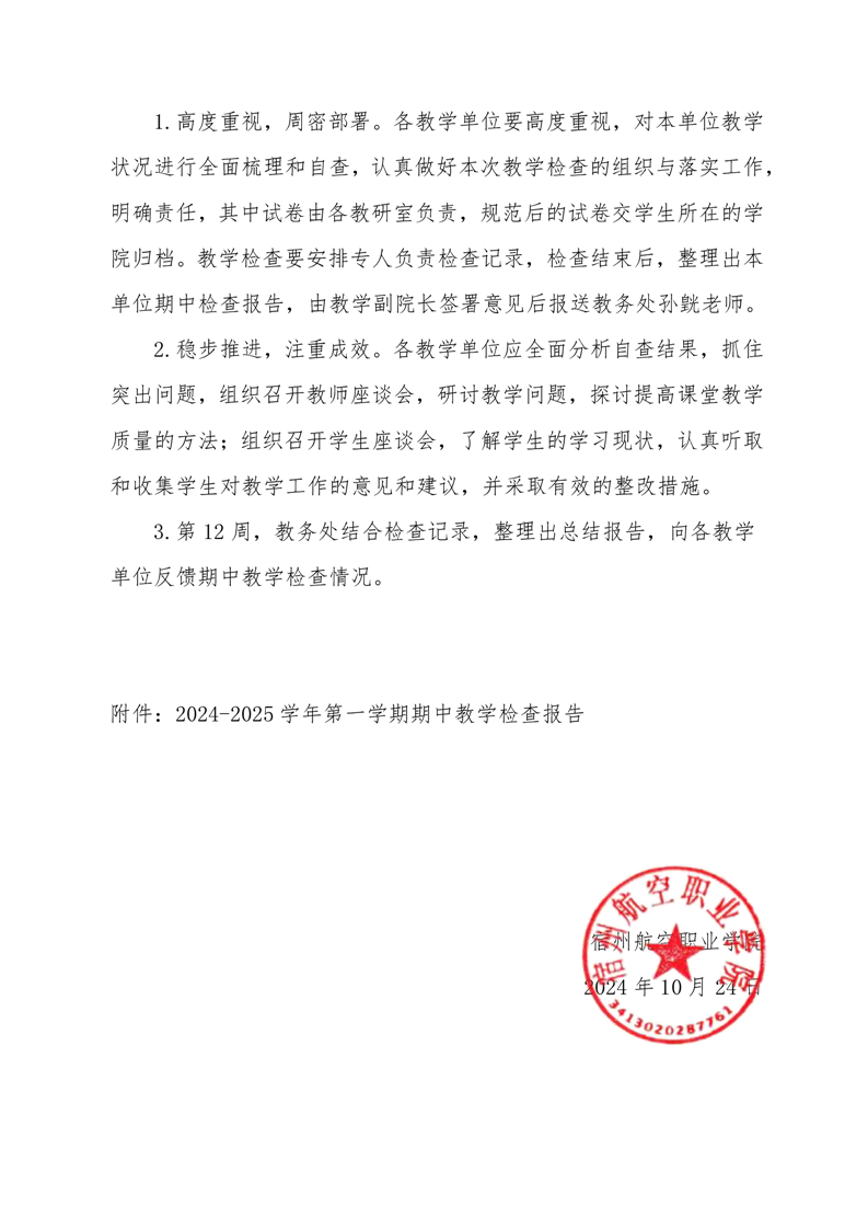 2024-2025学年度第一学期期中教学检查的通知