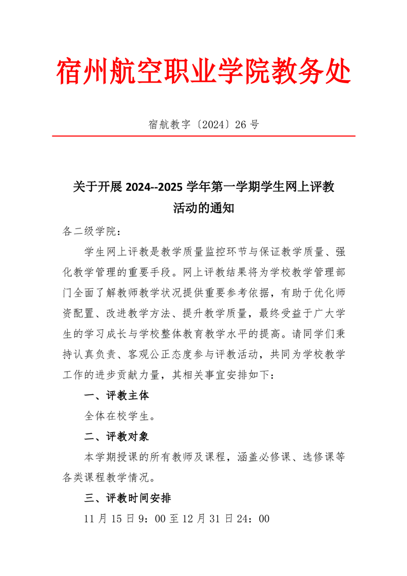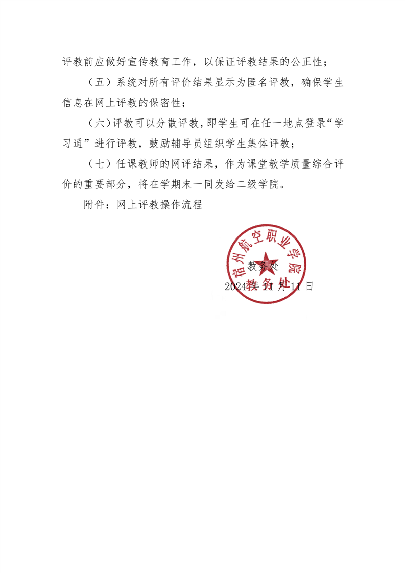 关于开展2024-2025学年第一学期学生网上评教活动的通知