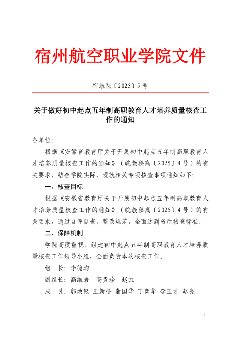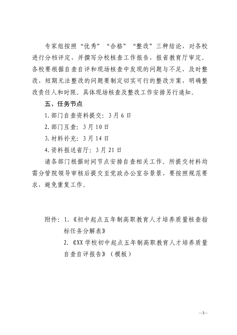 关于做好初中起点五年制高职教育人才培养质量核查工作的通知