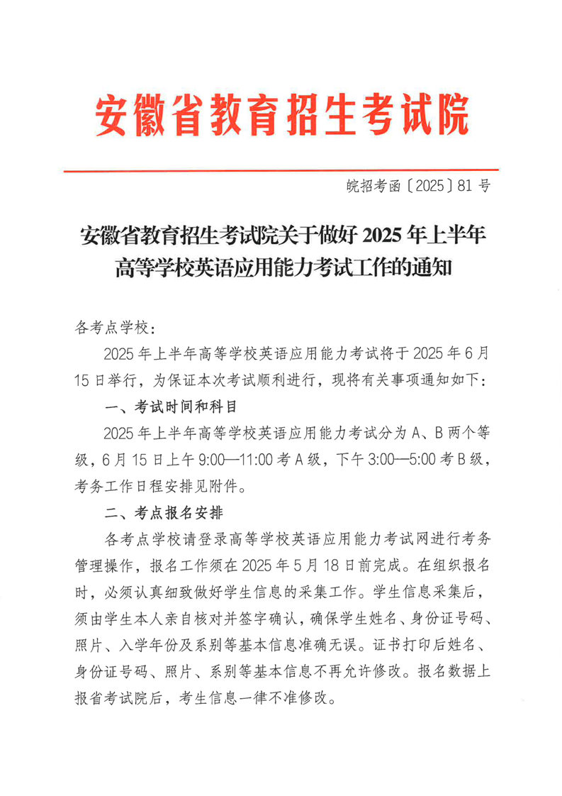 关于做好2025年上半年高等学校英语应用能力考试工作的通知