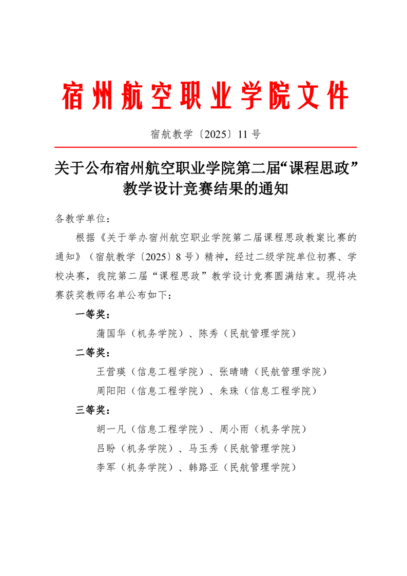 关于公布学院第二届“课程思政”教学设计比赛结果的通知
