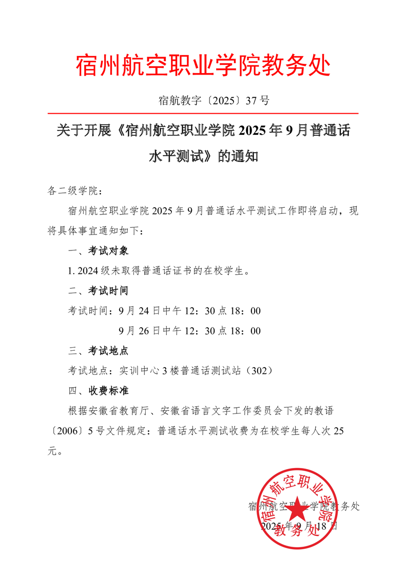 关于开展《彩神Vll学院2025年9月普通话水平测试》的通知