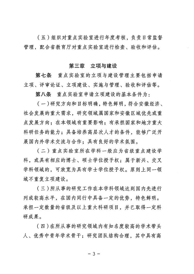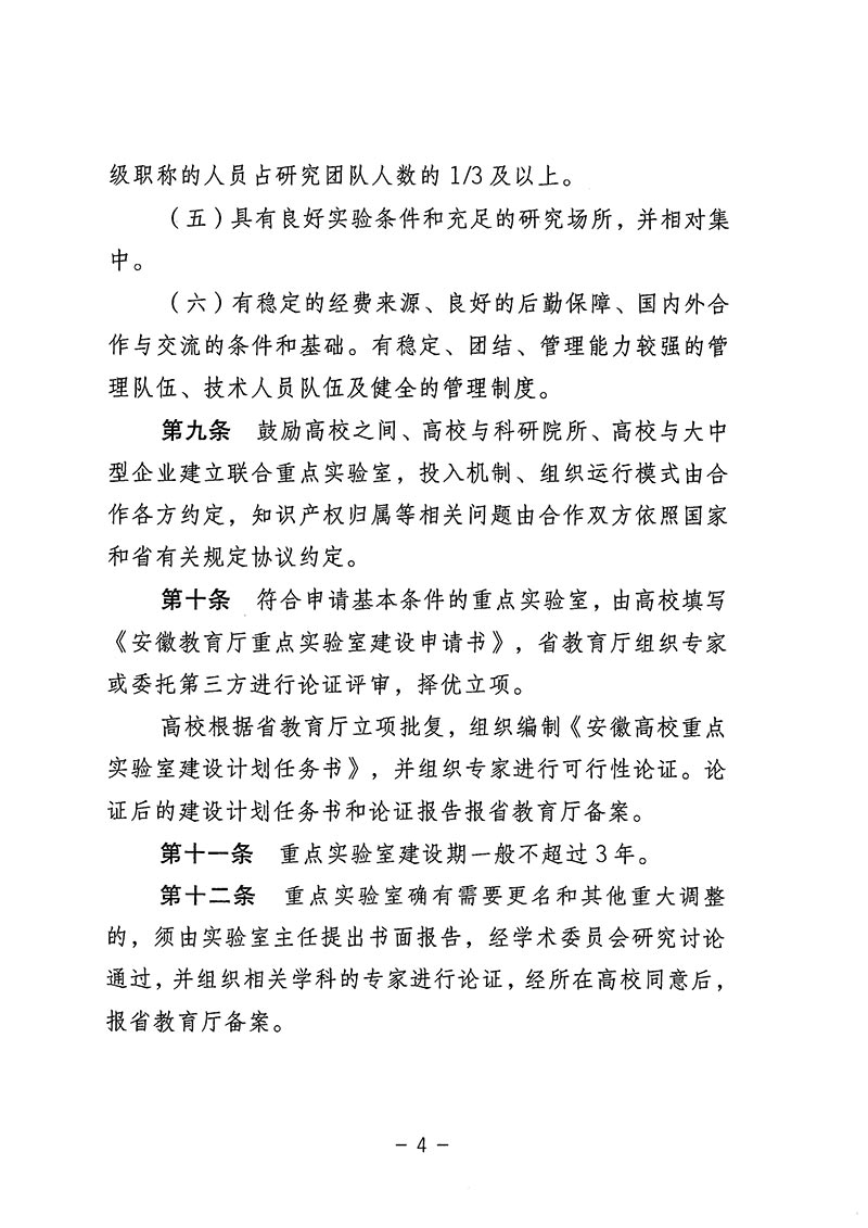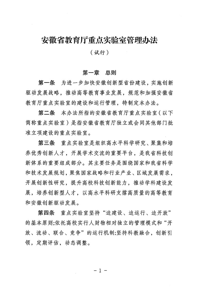 安徽省教育厅关于印发安徽省教育厅重点实验室管理办法(试行)的通知