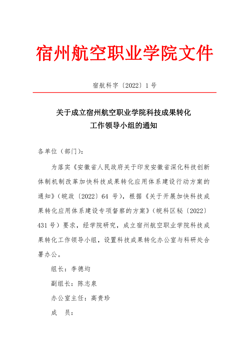 关于成立彩神Vll学院科技成果转化工作领导小组的通知