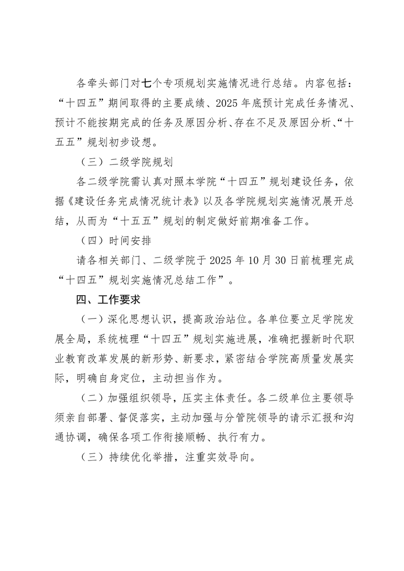 关于开展彩神Vll学院十四五规划实施情况总结工作的通知