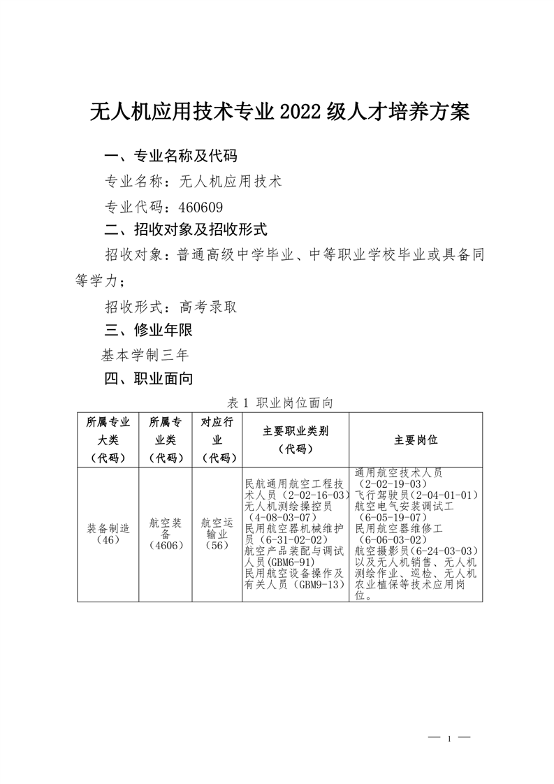 无人机应用技术专业2022级人才培养方案
