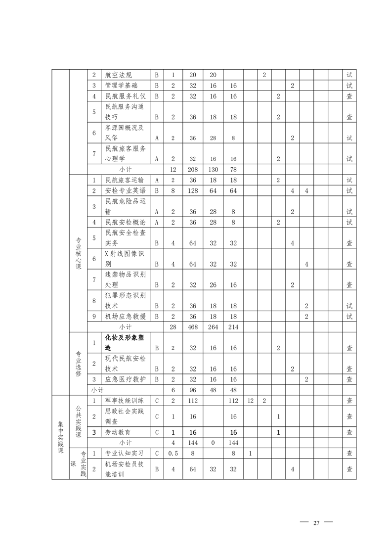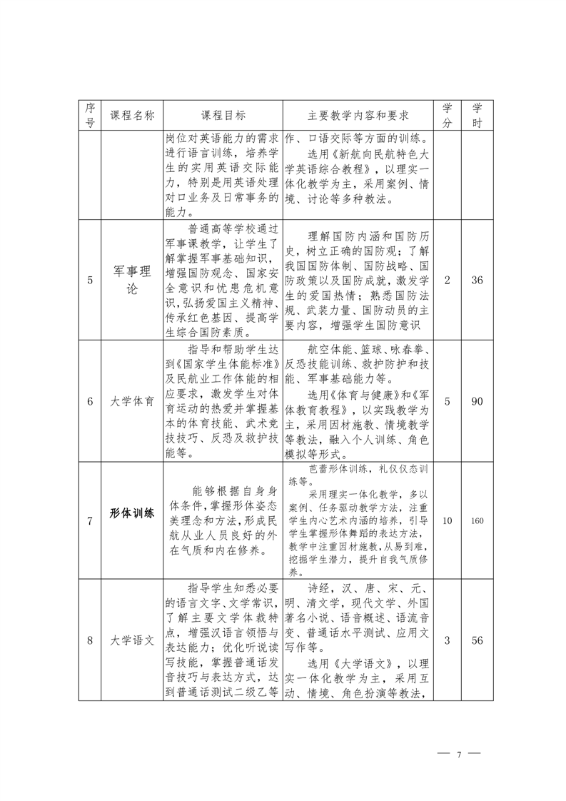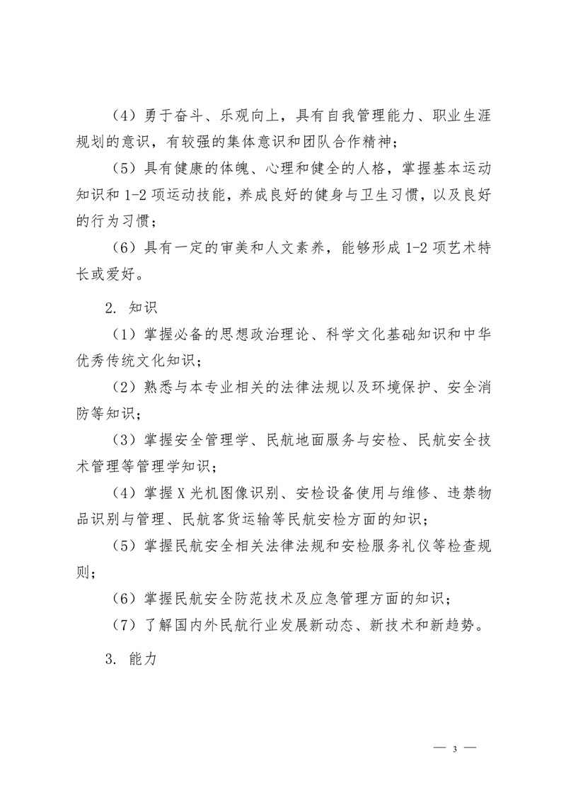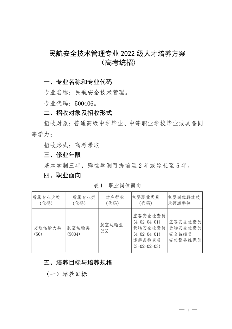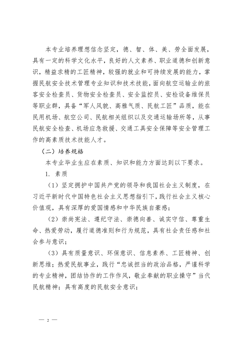 民航安全技术管理专业2022级人才培养方案 (高考统招)