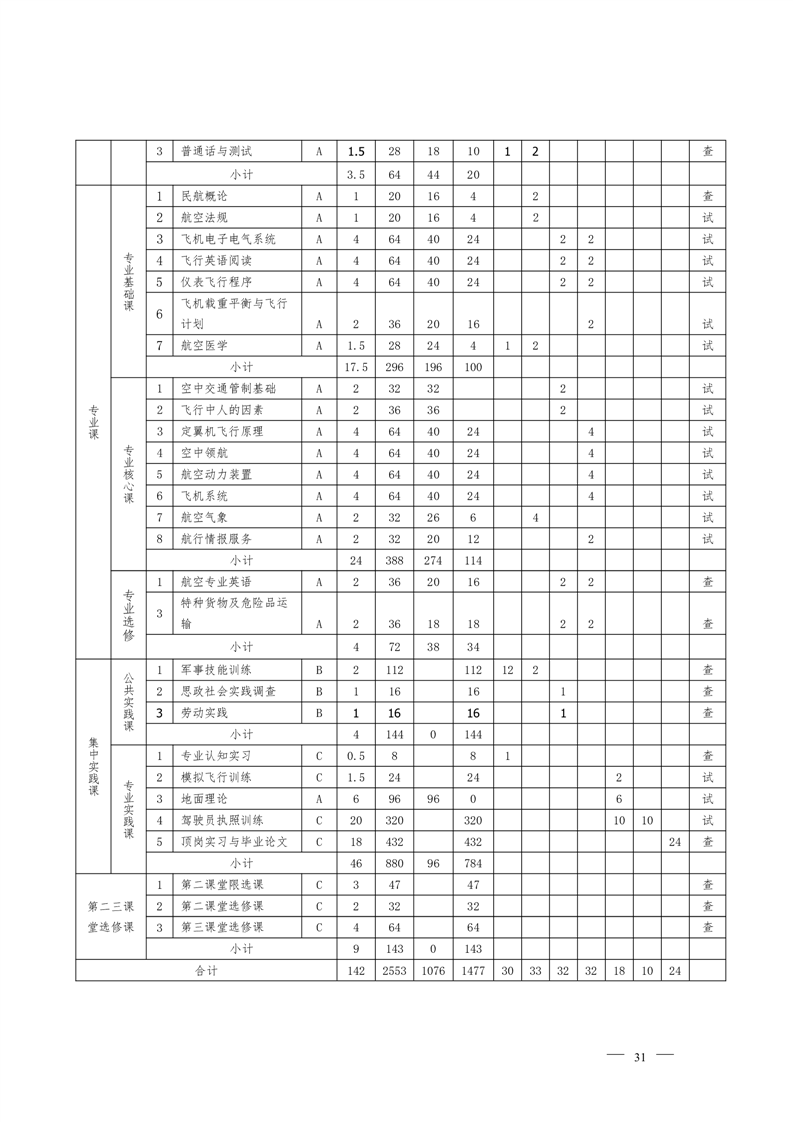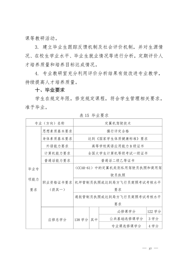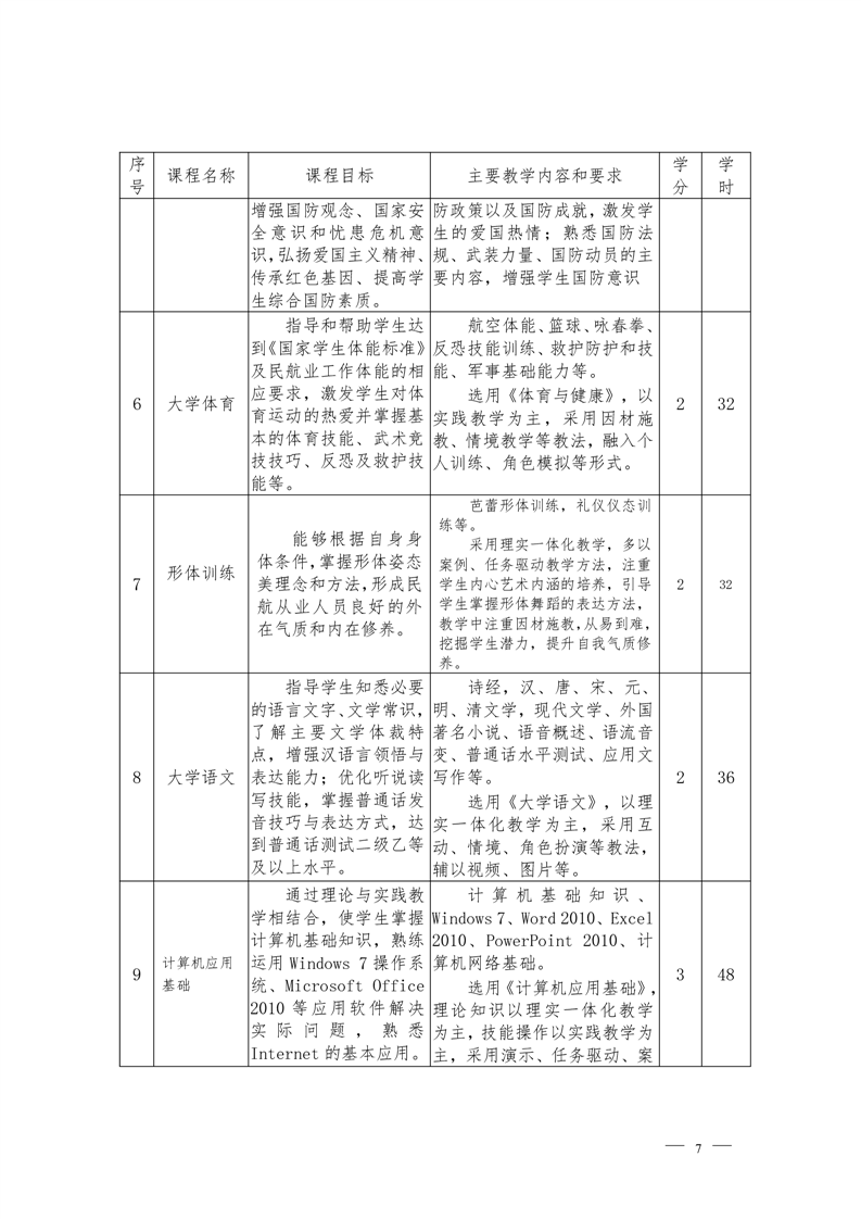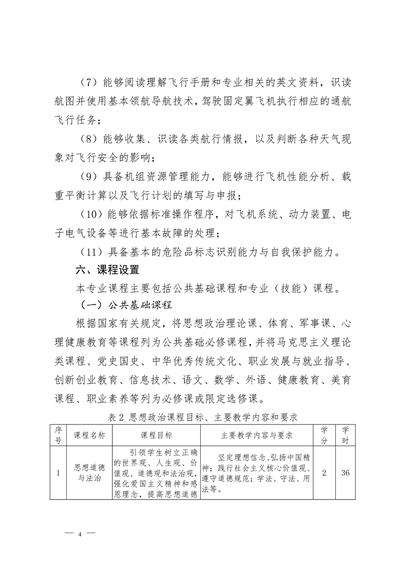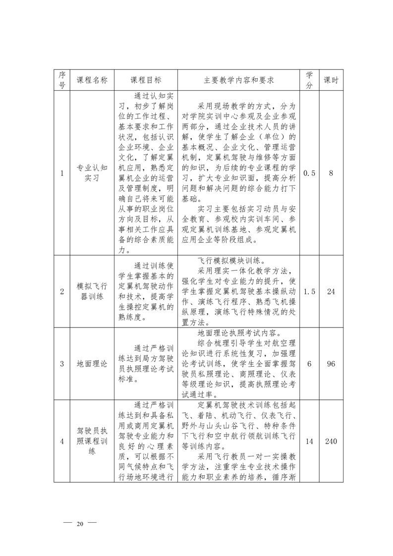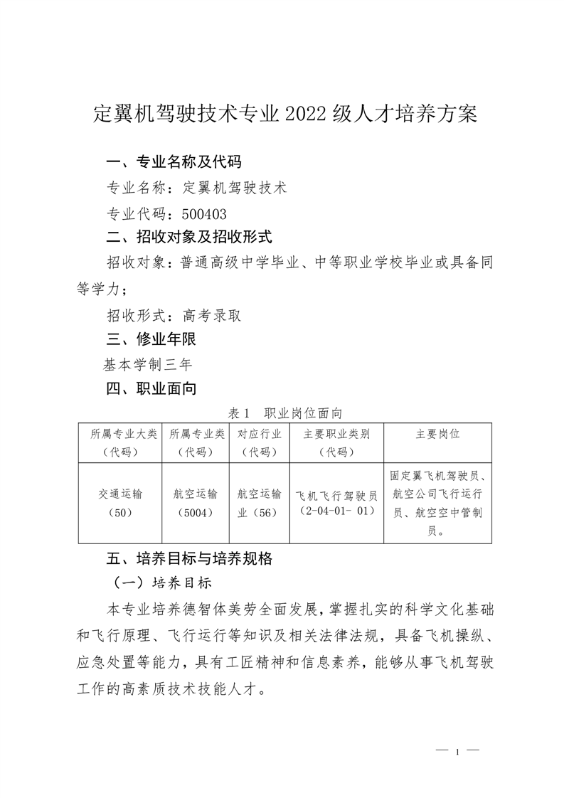 定翼机驾驶技术专业2022级人才培养方案
