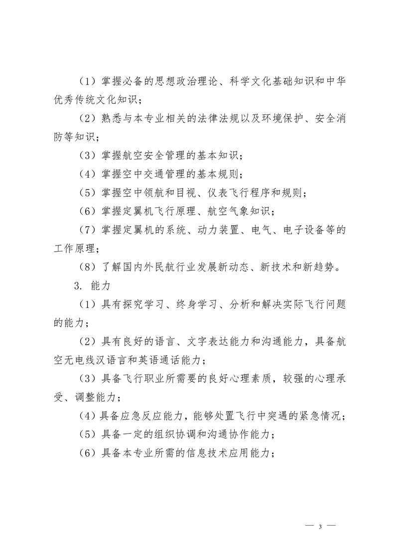 2021级定翼机驾驶技术专业人才培养方案