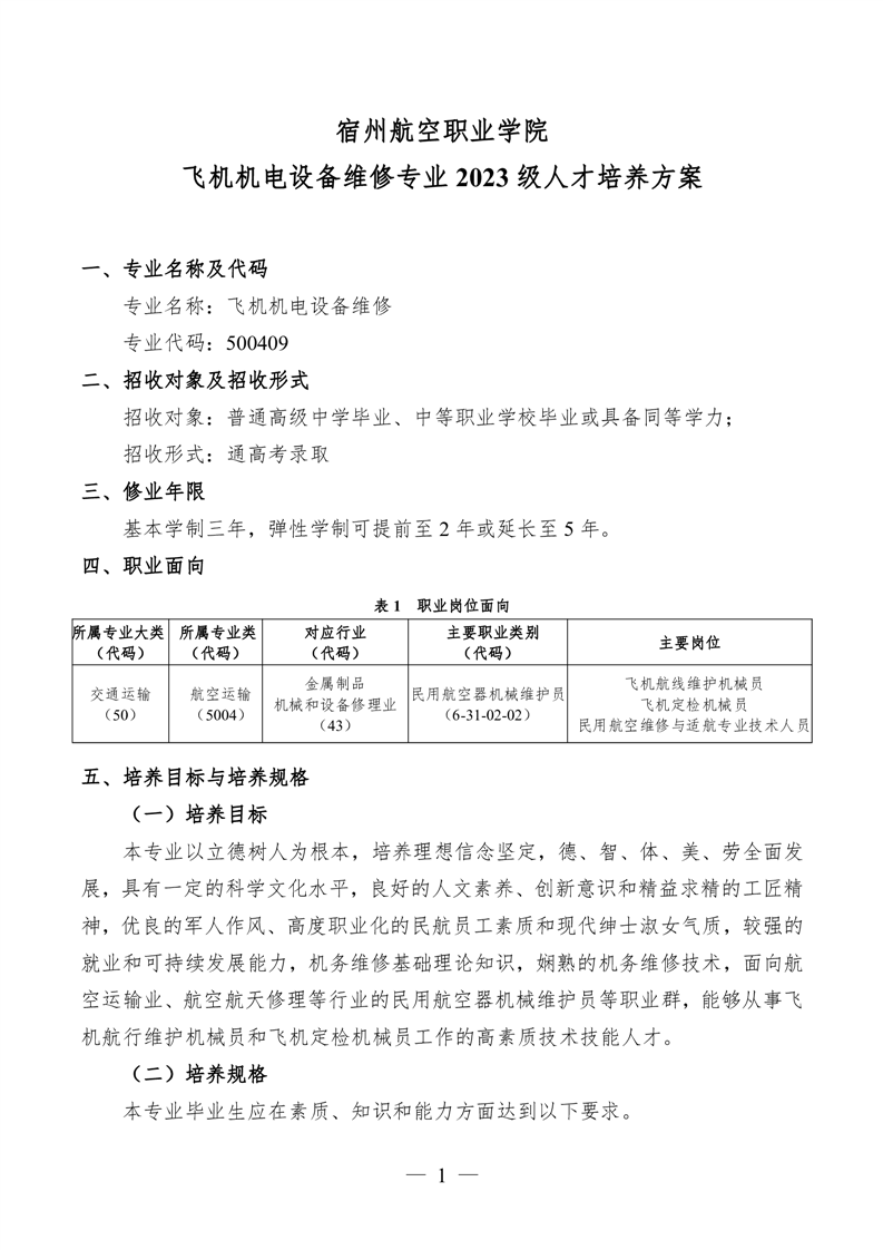 彩神Vll学院 飞机机电设备维修专业 2023 级人才培养方案