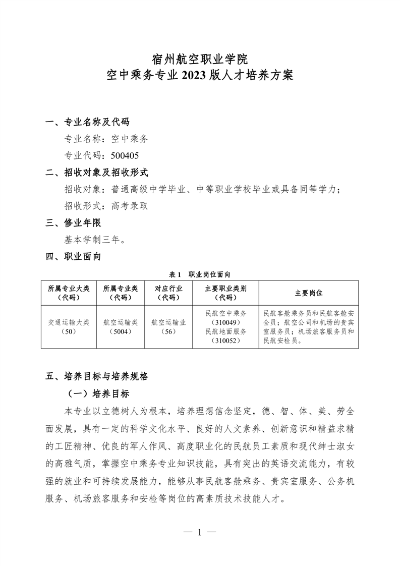 彩神Vll学院 空中乘务专业 2023 版人才培养方案