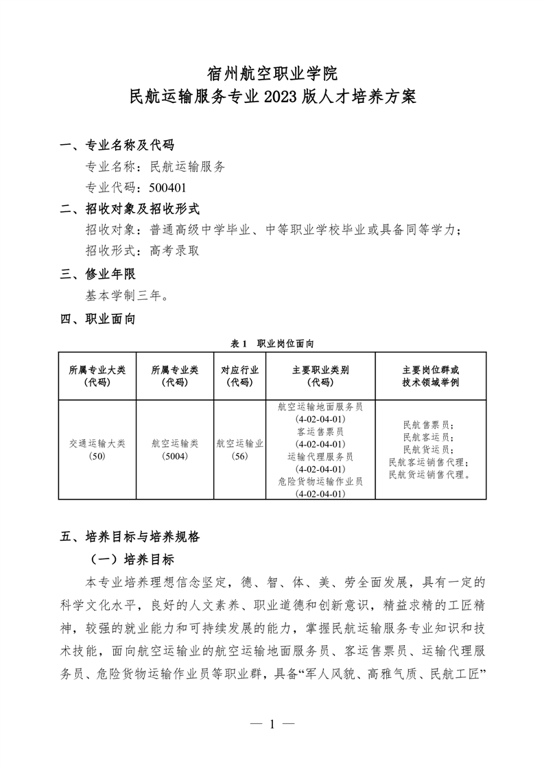 彩神Vll学院 民航运输服务专业 2023 版人才培养方案