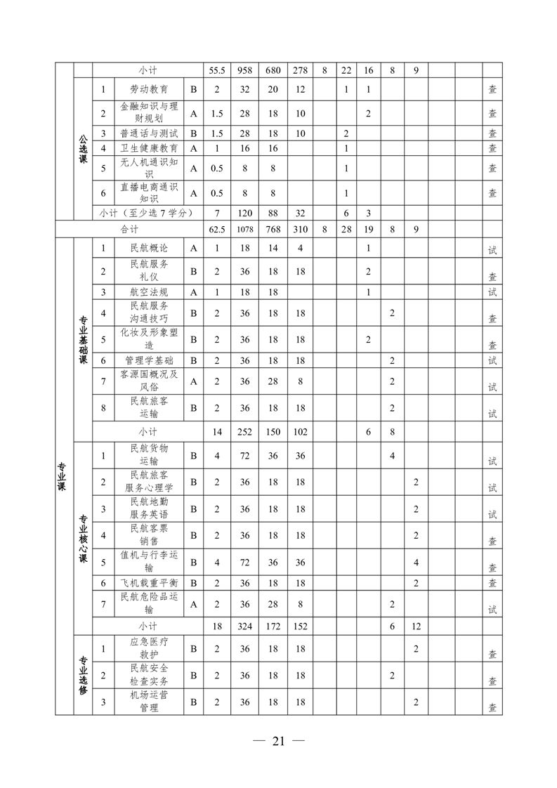 2021级定翼机驾驶技术专业人才培养方案