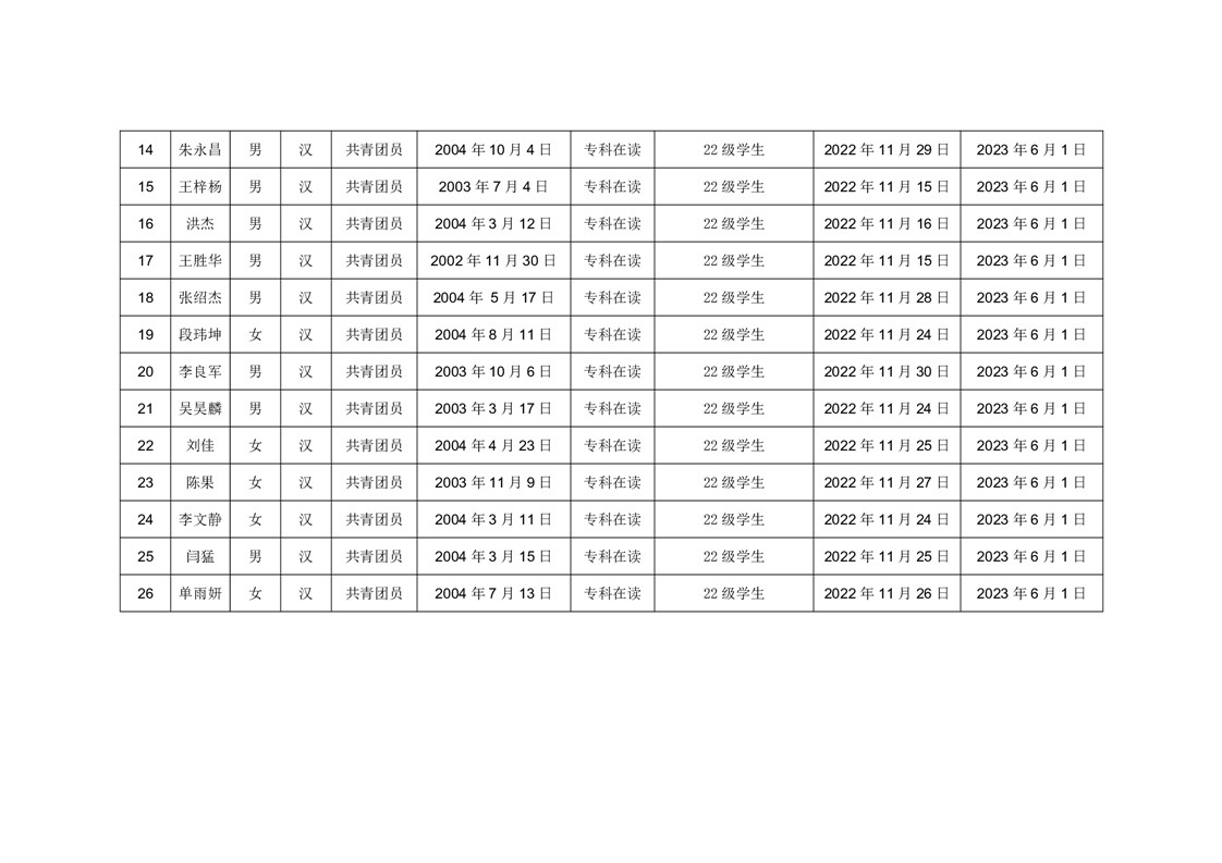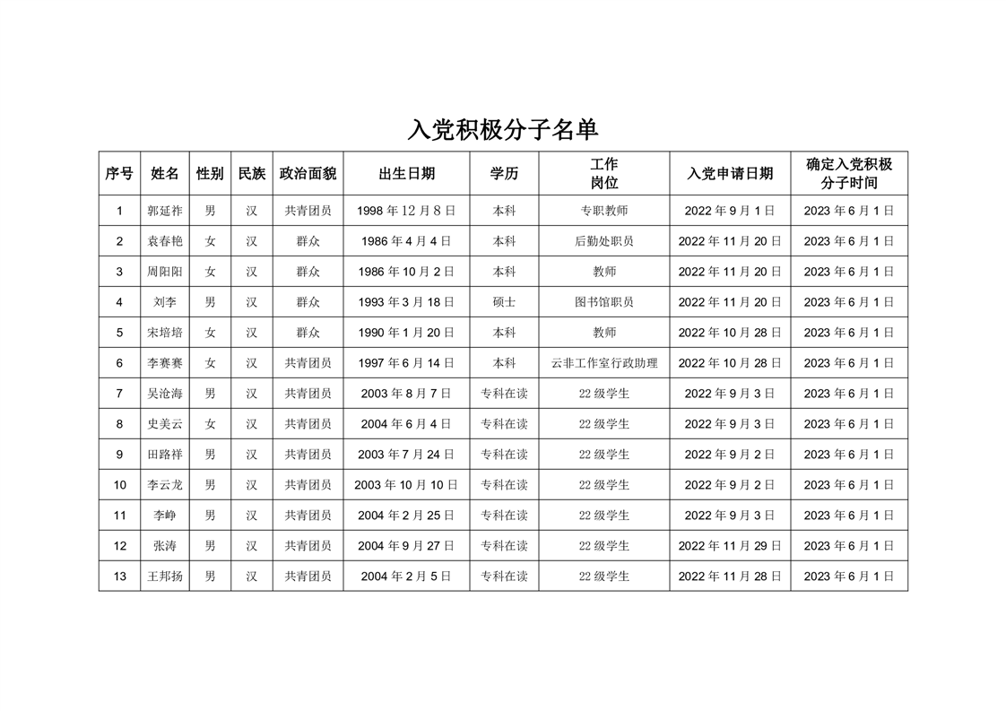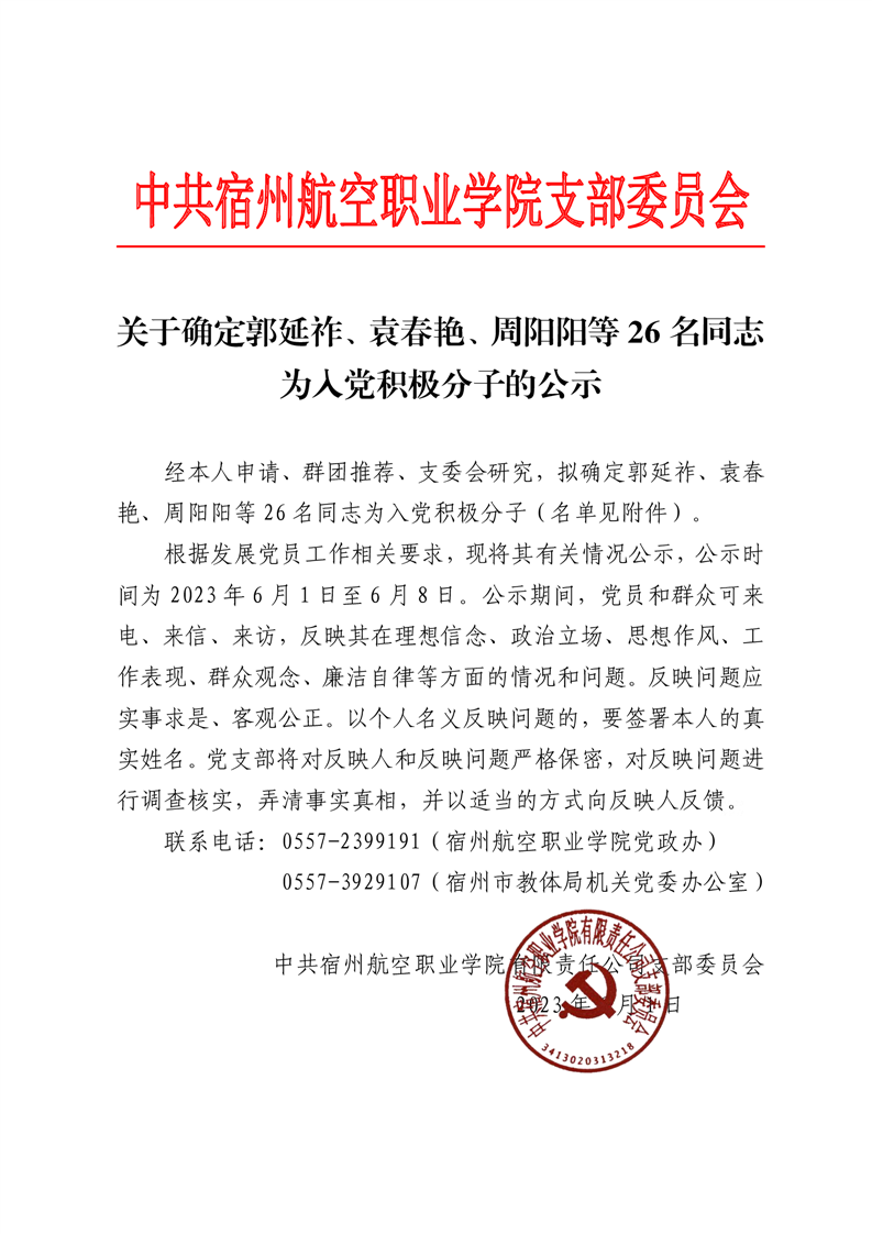 关于确定郭延祚、袁春艳、周阳阳等26名同志为人党积极分子的公示