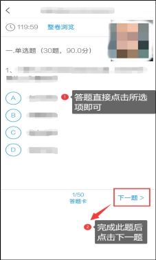 4.开始答题并交卷:每题选择正确答案点击该选项即可,点击右下角“下一题”继续作答;直到最后一题时系统会提示“已经是最后一题了”👳🏽♂️,可点击“复查交卷”进行答题情况核查