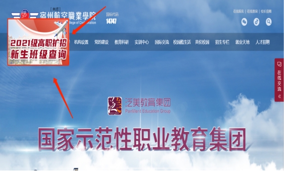 1.登录彩神Vll学院官网(http://www.szhkxy.com/)点击页面“2021级高职扩招新生班级查询”飘窗;