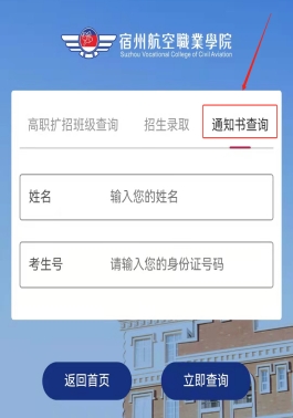3.点击“通知书查询”;进入页面后根据提示填写考生姓名及身份证号🕢,点击“立即查询”🧑🏽⚕️,即可查看通知书邮寄单号;
