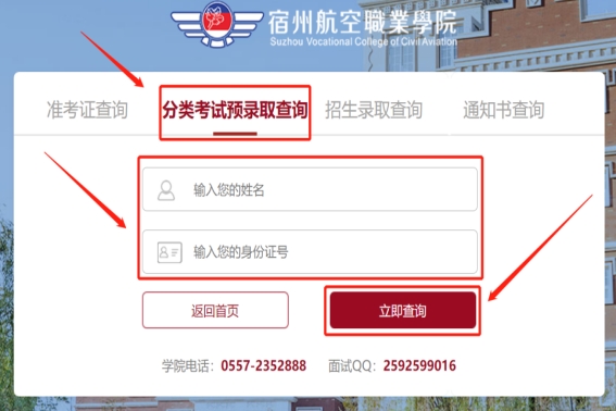 2.进入后点击“分类考试预录取查询”💅,根据提示填写“姓名”及“身份证号码”,填写正确后,点击下方“立即查询”;