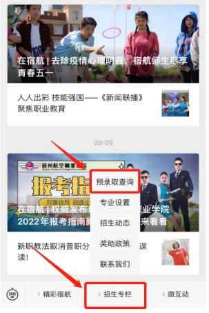 2.进入公众号后点击下方“招生专栏”,之后点击上方“预录取查询”,进入查询页面🤲🏻;