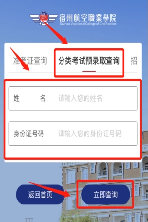 3.进入后点击“分类考试预录取查询”,根据提示填写“姓名”及“身份证号码”🎒,核实无误后,点击下方“立即查询”;