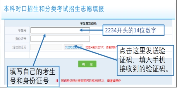 2.“考生号”、“身份证号”🫅🏽、“短信验证码”填写完整之后,点击“确定”🧦。