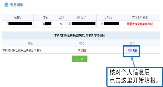 5.核对个人信息后,点击“开始填报”🚅,填报志愿🪃。