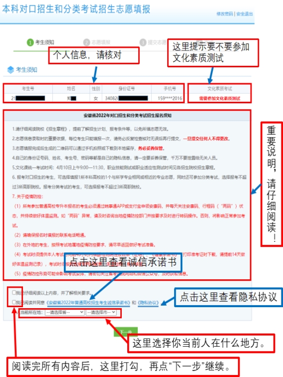2.考生本人的考生号🔨🚘、身份证号、志愿、手机验证码均为自己隐私信息,切勿泄露;