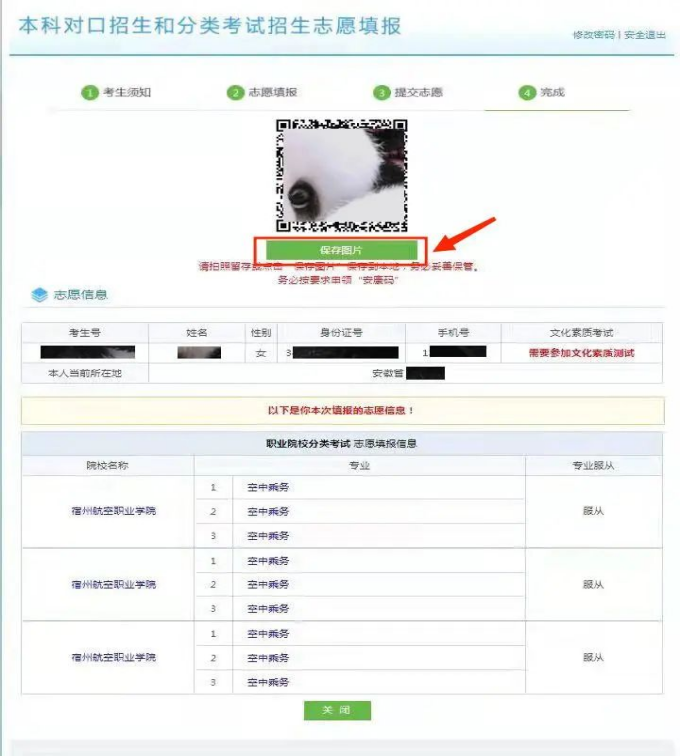 10.二维码包含加密的个人信息和志愿信息,点击“保存图片”将二维码保存到本地电脑。