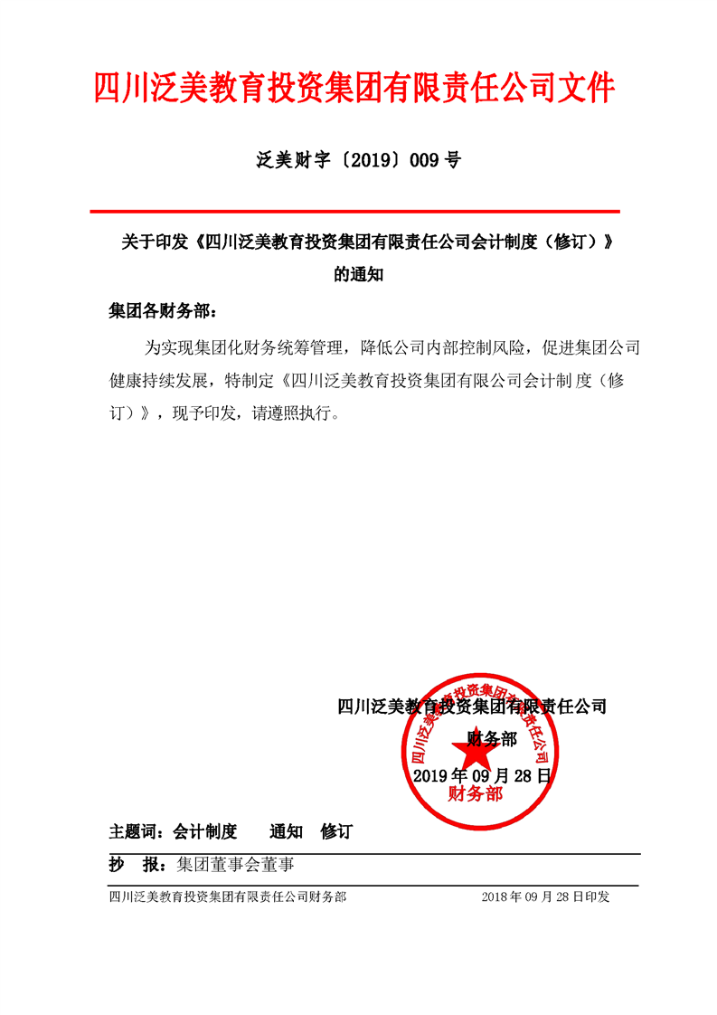 关于补充修订《四川泛美教育投资集团有限责任公司会计制度》的通知