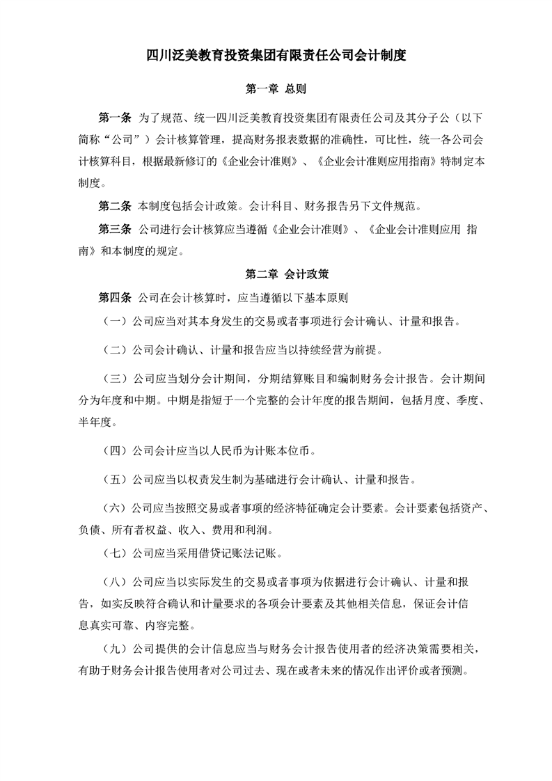 关于印发《四川泛美教育投资集团有限责任公司会计制度(修订)》的通知