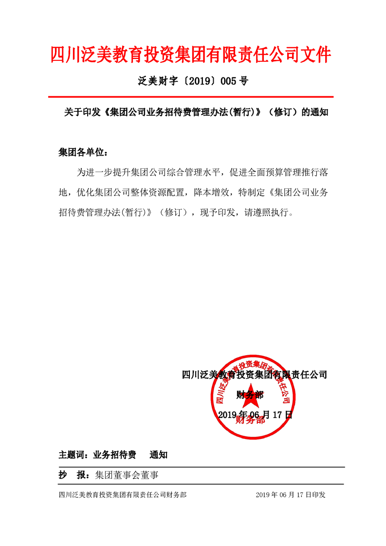 关于补充修订《四川泛美教育投资集团有限责任公司会计制度》的通知