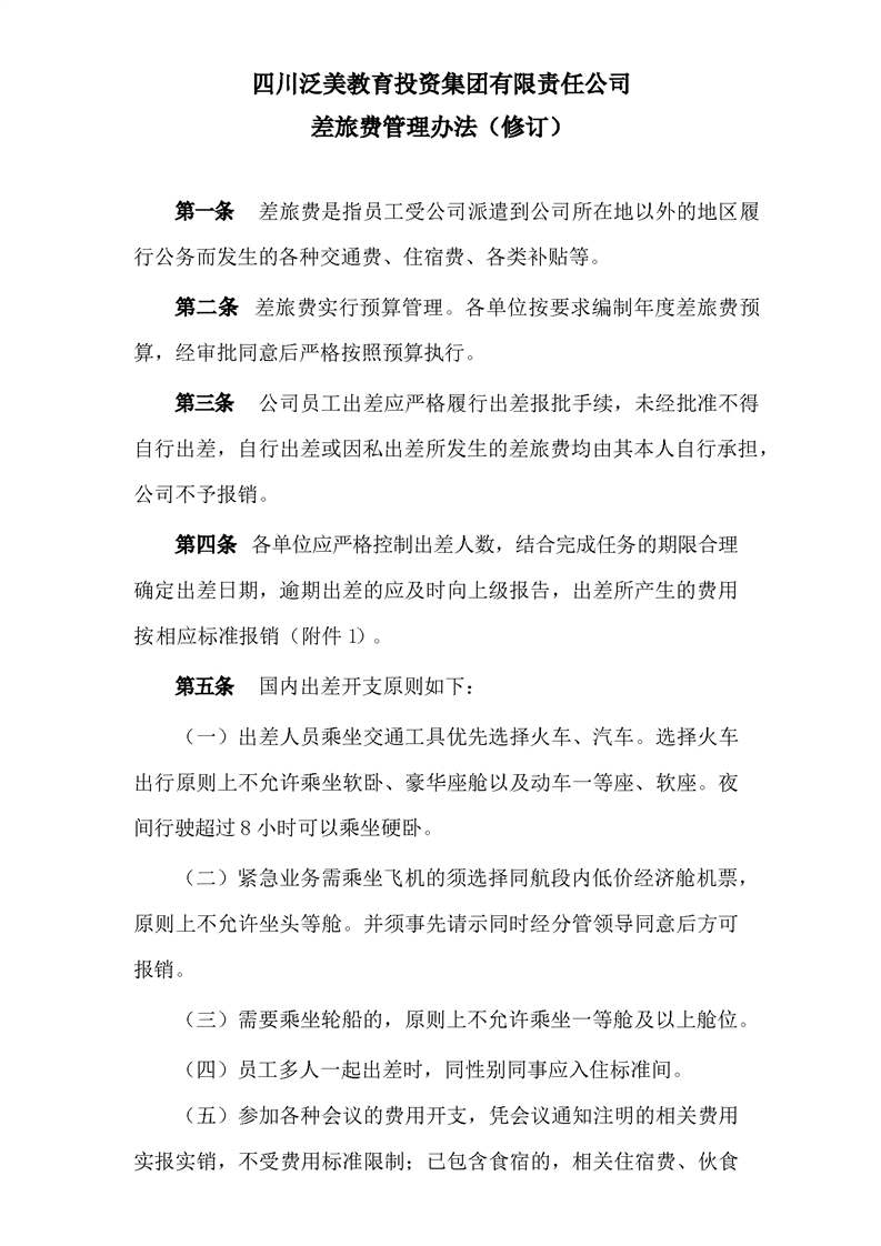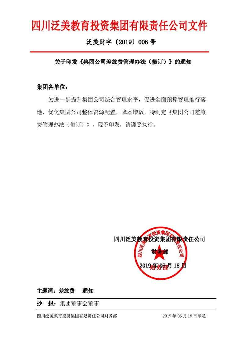 关于印发《集团公司差旅费管理办法(修订)》的通知