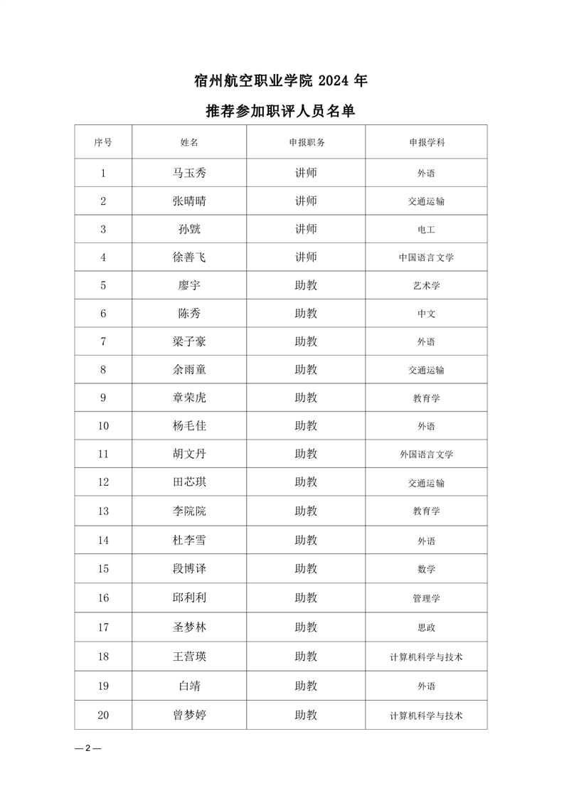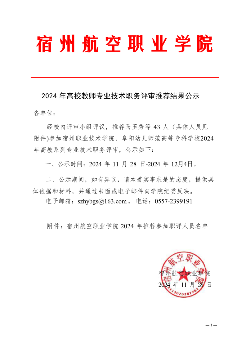 2024年高校教师专业技术职务评审推荐结果公示