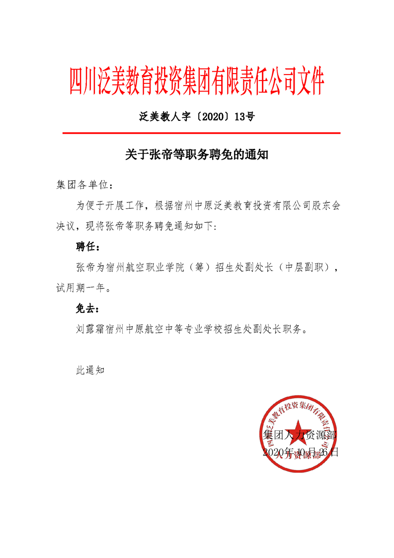 关于张帝等职务聘免的通知