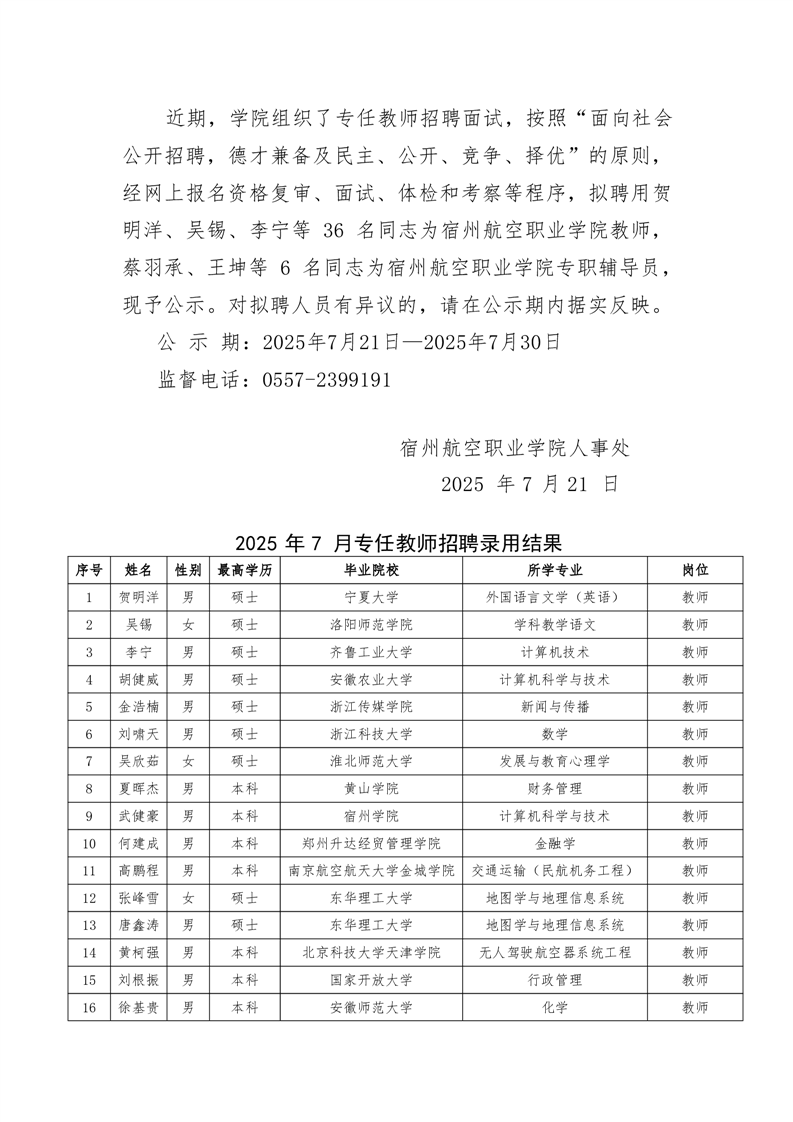 彩神Vll学院2025年7月专任教师🏊、辅导员招聘录用公示