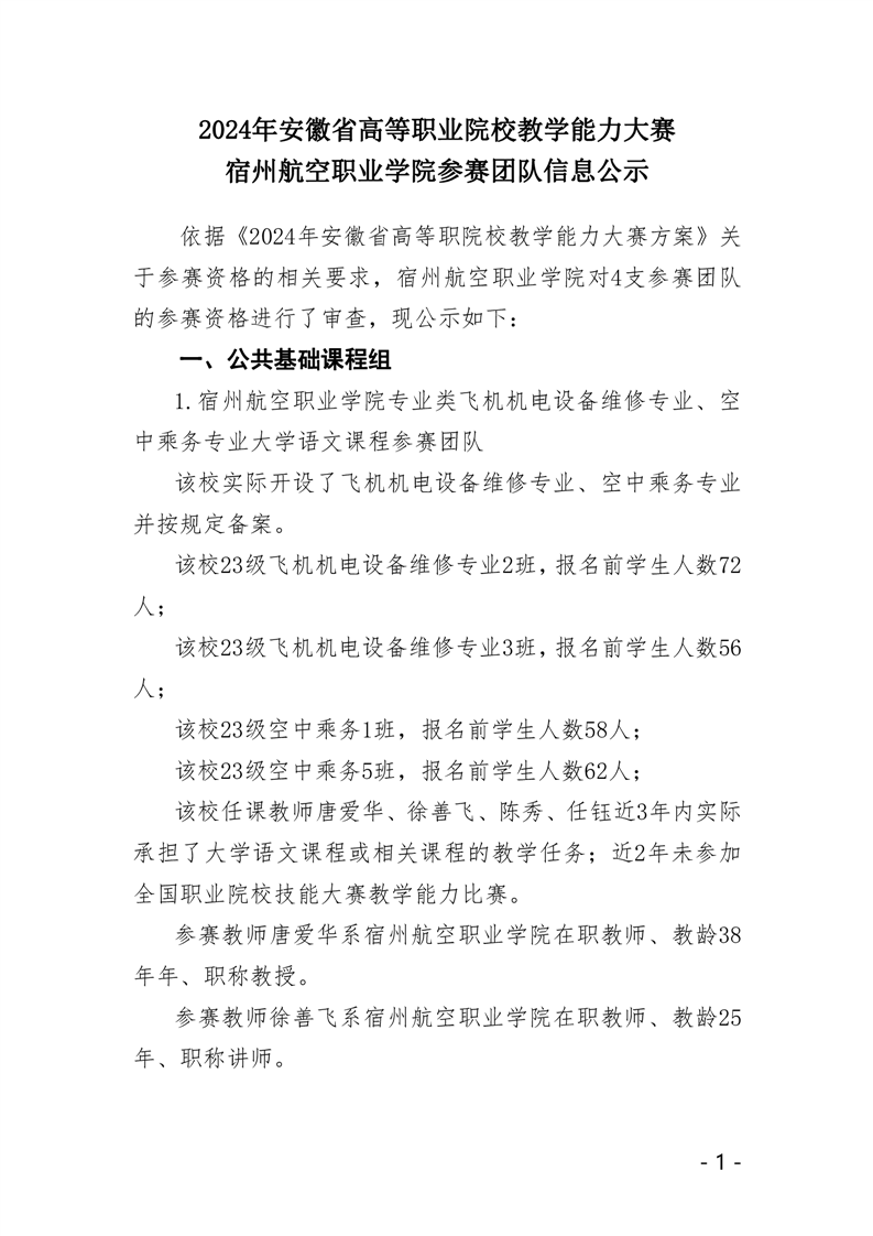2024年安徽省高等职业院校教学能力大赛彩神Vll学院参赛团队信息公示
