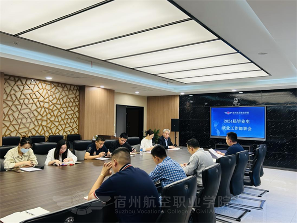 20231015日下午14:302024届毕业生就业工作部署会议在行政楼会议室举行♕。宿州区域总裁🤽🏼‍♂️、执行院长李德均,教务处处长郭焕银📯,招生处处长张帝🧑🏽‍🍳,学生处处长谢凡飞🫳,财务处经理葛朋朋,就业处处长高瑞及其他各处相关人员参加会议。