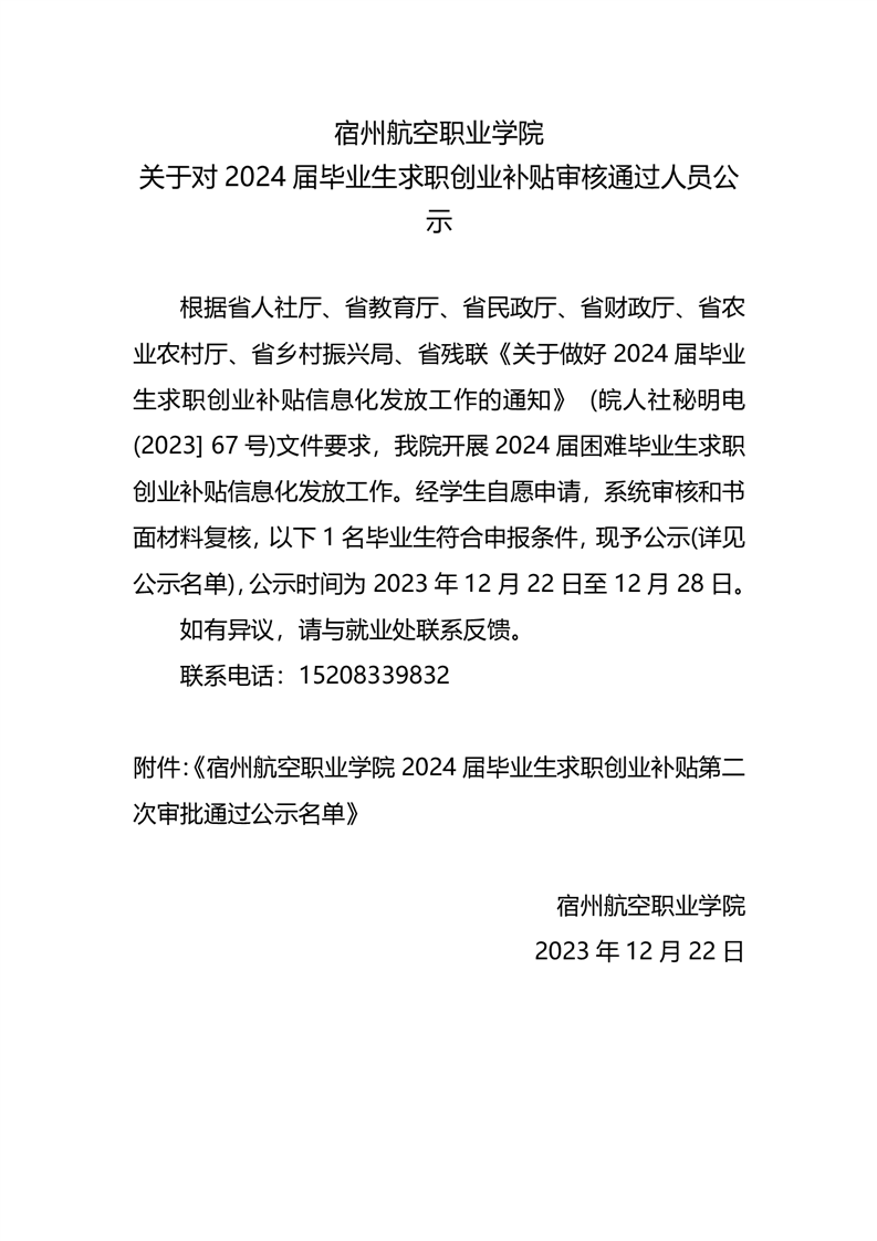 彩神Vll学院关于对2024届毕业生求职创业补贴审核通过人员公示