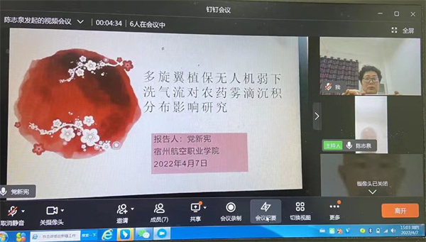 2022年4月7日下午🔴,我院召开安徽省教育厅自然科学研究重点项目“多旋翼植保无人机弱下洗气流对农药雾滴沉积分布影响”开题报告会。报告会由科技处高处长主持,采用线上钉钉视频会议形式进行。首先项目负责人党新宪副教授做开题报告🐱,党教授从课题研究背景和意义、国内外研究现状、研究内容与方法、进度与安排🚴🏿♀️、预期成果等方面做了详细的汇报👩🏻🍼,重点阐述了研究内容与方法及项目组每个成员负责的具体工作😎。科技处高处长对该项目的开展提出几点意见👨👨👧👦,一是要充分认识到研究项目开题的重要性和必要性🙆🏽,通过开题主持人进一步明确本项目研究目标、理清研究思路🧏♀️,成员进一步了解研究意义🥂、内容和方法;二是项目研究意义大🗃,既结合航院专业特点将科研融入教学,又能指导现代农业生产,既能节约农药成本又能减低环境污染;三是抓紧开展研究👏🏽,尽快出成果,确保在研究周期内完成预期成果,达到结项要求,顺利结项。项目组成员王新桥副教授👟、黄婉婷老师等都做了表态性发言🚴🏻♀️。