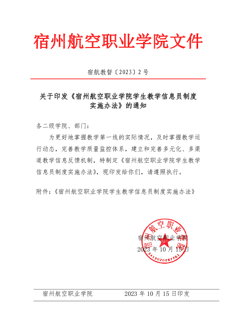 关于印发《彩神Vll学院学生教学信息员制度实施办法》的通知