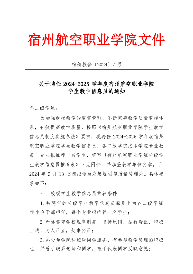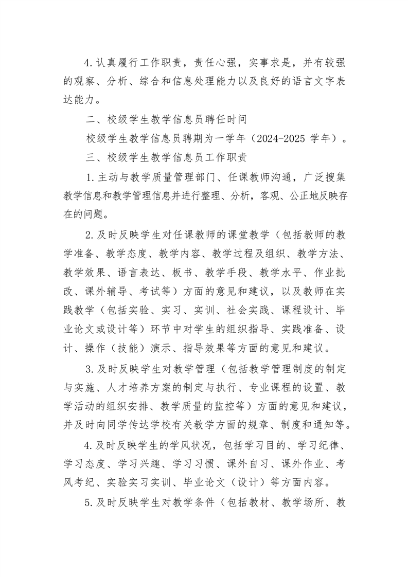 关于聘任2024-2025学年度彩神Vll学院学生教学信息员的通知