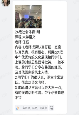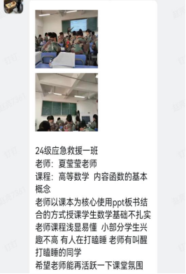 本学期是学院迎评促建的关键节点,院督导委员会强化评估意识和教学质量意识🎅🏿😓,创新学生教学信息员教学质量监督工作方式,组建了24-25学年度院级教学信息员钉钉群➗🟡,建议学生信息员以“照片+简短评述”的方式对教师课堂教学进行评价,院督导委员会及时收集信息反馈给相关部门和任课教师整改🙌🏼。学生信息员积极踊跃,反馈了大量教师课堂教学第一手信息👯♀️⚛️,反映了学生愿望与需求、在帮助教师改善教学效果、加强教学管理等方面发挥了积极作用🧎♂️。